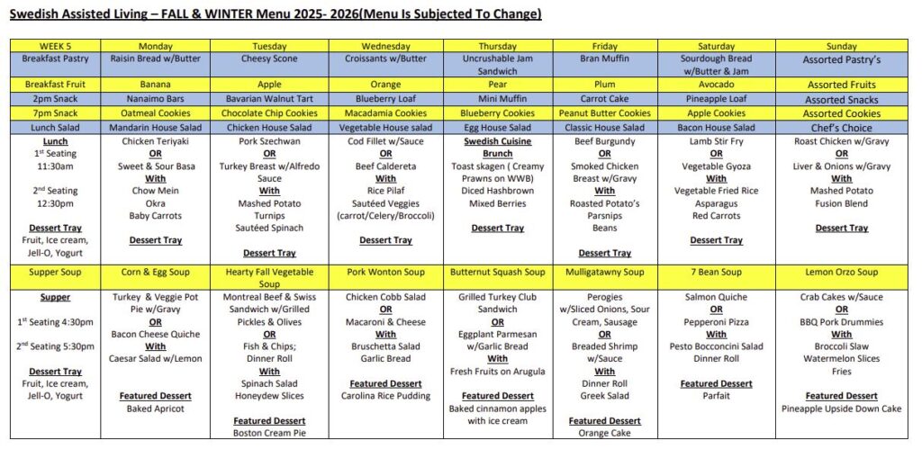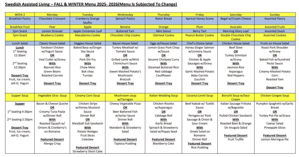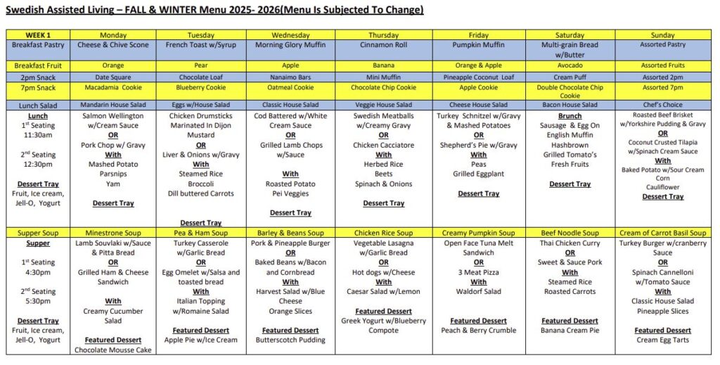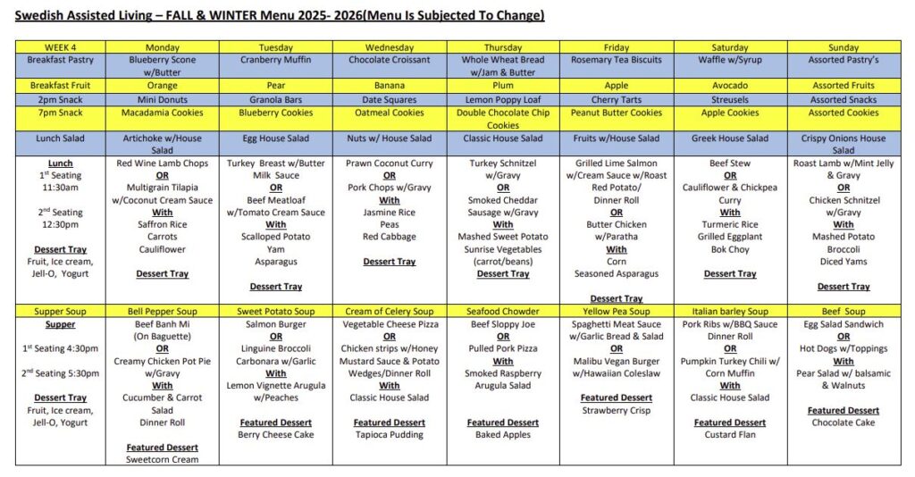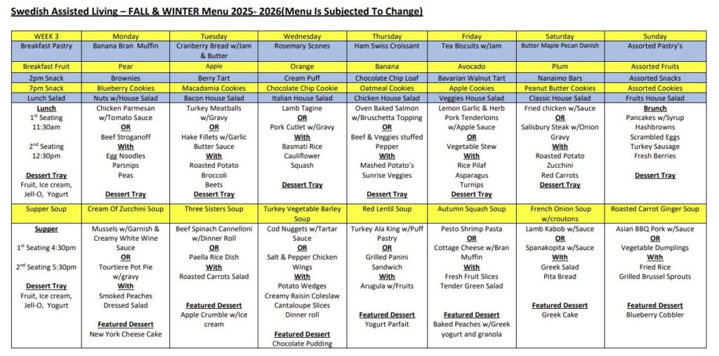 ASSISTED LIVING RESIDENTS – FALL & WINTER MENU 2025